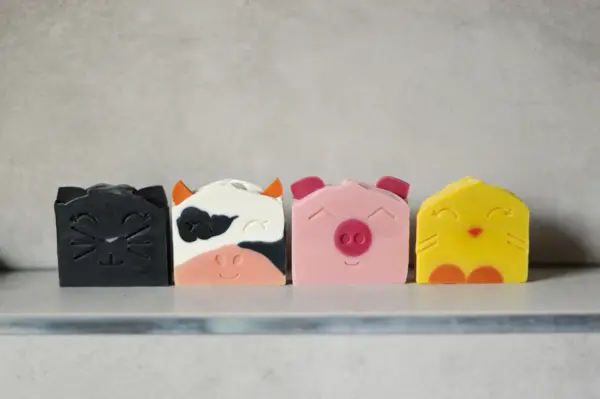 Il primo è Happy Pig! Questo maialino è proprio speciale perchè è molto pulito e adora fare il bagno. Infatti ha un bellissimo colore rosa e profuma di frutta dolce fresca. A contatto con l’acqua produce una schiuma morbida e cremosa, perfetta per fare una gara di bolle di sapone.