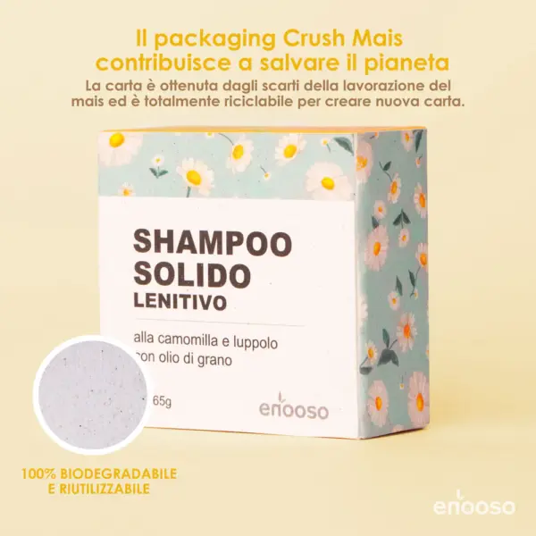 Lo Shampoo Solido Lenitivo di Enooso, formulato con camomilla e aloe biologica, aiuta a calmare i fastidi del cuoio capelluto più sensibile, allevia prurito e favorisce un’igiene delicata ma profonda. La sua schiuma delicata lava senza togliere sebo in eccesso, equilibrando cute e capelli. Le sinergie di lavanda e burro di cacao nutrono le lunghezze senza appesantire, rendendo i capelli setosi e facili da pettinare. Il profumo di camomilla e calendula è discreto e fresco.